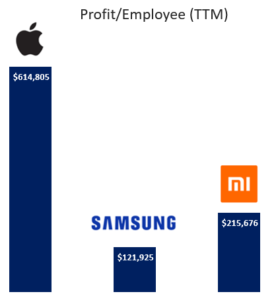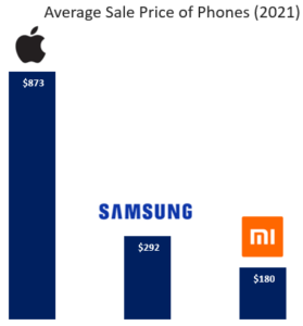 Comparing the three most popular mobile phone brands in the world. Each of these companies derive ~50% of their revenue from mobile phone sales.